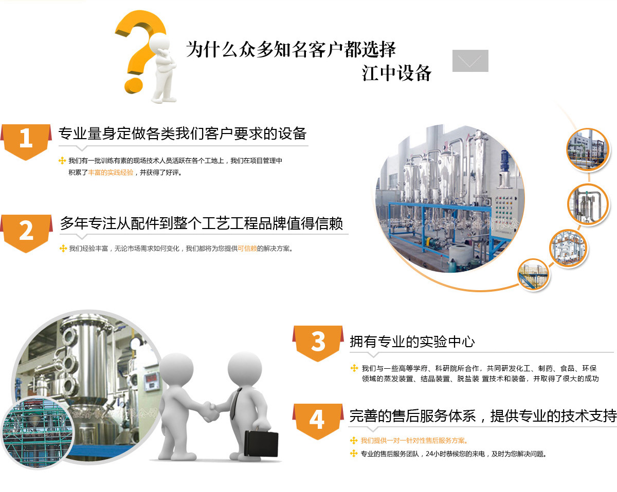 江陰市江中設(shè)備制造有限公司是一家專(zhuān)業(yè)從事蒸發(fā)、濃縮、提取、污水處理等設(shè)備的廠家。廣泛應(yīng)用于制藥、化工、食品、農(nóng)副產(chǎn)品深加 冶金、電子等多個(gè)領(lǐng)域。產(chǎn)品遍及全國(guó)三十余個(gè)省、市、區(qū),并遠(yuǎn)銷(xiāo)歐美及東南亞一些國(guó)家和地區(qū)。公司實(shí)力雄厚,匯聚了一批高層次、高素質(zhì) 的專(zhuān)業(yè)人才,一直致力于產(chǎn)品的開(kāi)發(fā)、生產(chǎn)和管理,并十分注重科技創(chuàng)新,所生產(chǎn)的設(shè)備受到用戶(hù)的青睞。
